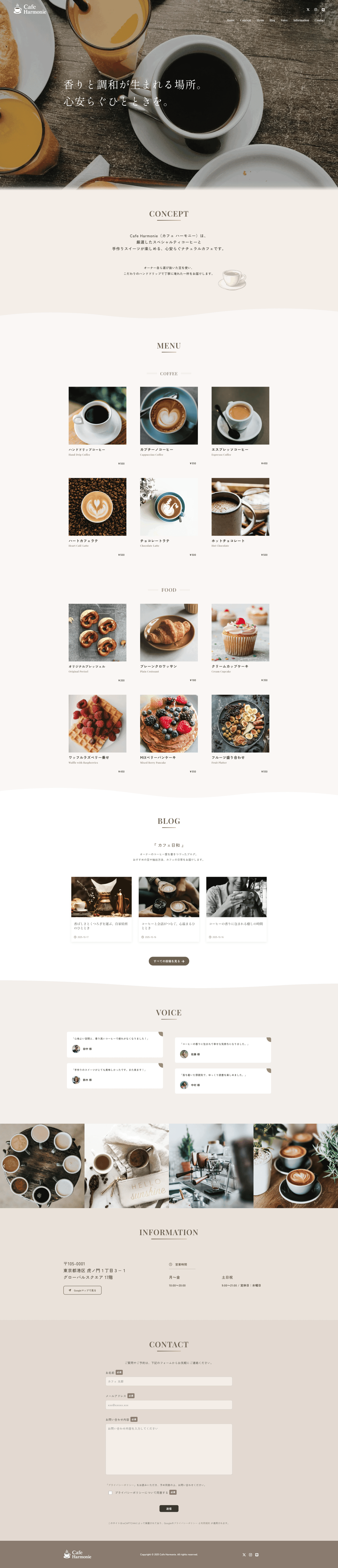 背景にはコーヒーを想起させる色味を採用し、セクションの区切りには水面の揺らぎを思わせる波線を取り入れることで、コーヒーの世界観を保ちながら、読みやすくなるよう心がけました。